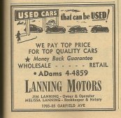 The Lawler used car department still operated across the street at 1217 Frederick venue.